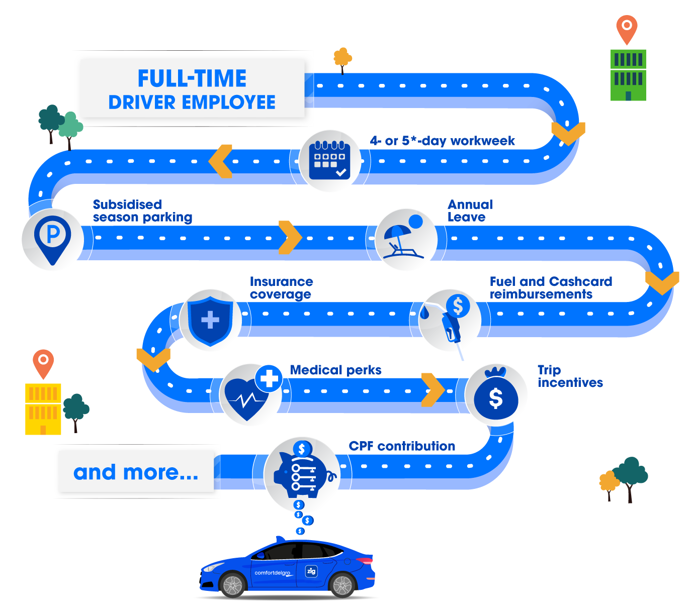 Once you have joined us as an taxi driver under our Driver-employee Scheme (DES), there are tons of benefits to be enjoyed: